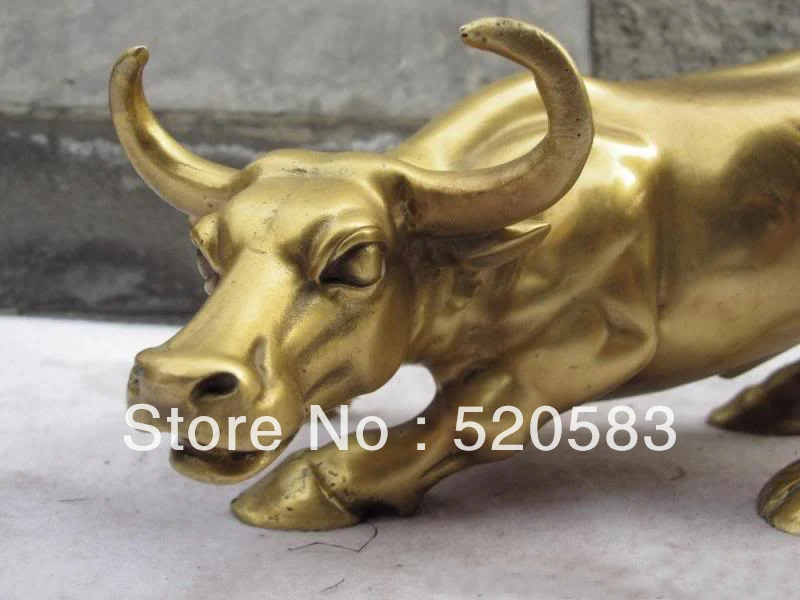 8 Chinese pure brass Copper carved Wall Street Fierce Bull OX fengshui Statue