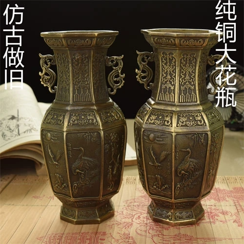 The large antique brass vase flower bottle ornaments Daming Xuande eight vase vase wall dies
