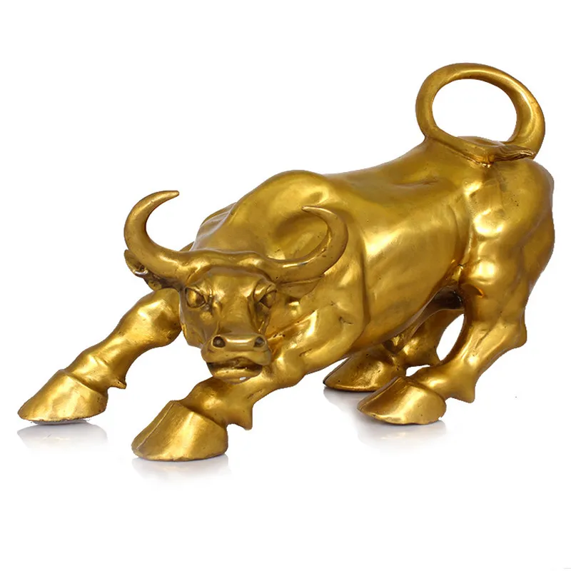 Copper Brass Wall Street Bull Ox De Charge Stock Marche Bull Statue Feng Shui Animal Sculpture Home