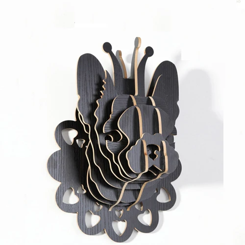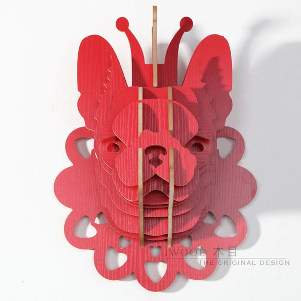 BEST Creative Home Decoration 5mm MDF Animals Head French Bulldog Wooden Carving Crafts For Wall Decorat