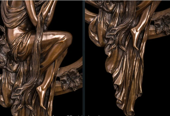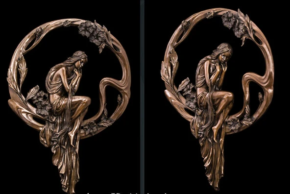 007947 Art Deco Sculpture Wall Ornamentation Beauty Girl Sit Flower Loop Bronze Statue