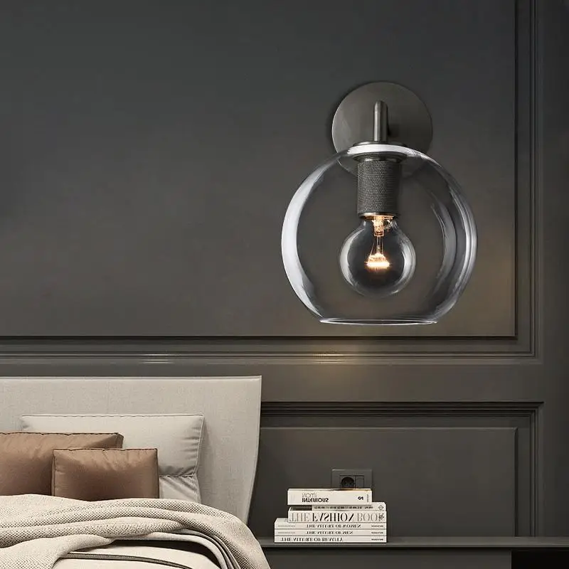 Modern Industrial Wall Lamps Edison Bulb Glass Lampshade Wall Lamp Bedroom Bedside Wall Sconce Lamp