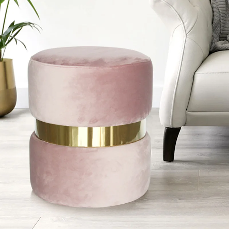 Best Quality Nordic wind flannel shoes stool round makeup stool light luxury shoes stool INS metal ring stool