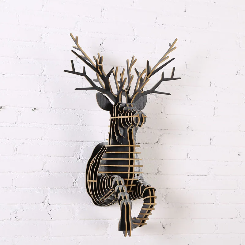 DIY RUNNING DEER Wall Wooden Craft Animal Head Wall Hanging Wooden Interior Home Decoration WDM020M