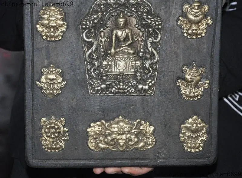 Christmas 12" Tibet wood bronze eight treasures Dragon Sakyamuni statue Thangka Wall mount Hallowee