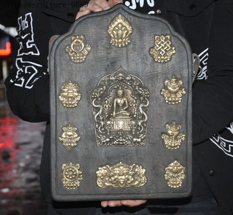 REVIEW TOP SELLER Christmas 12" Tibet wood bronze eight treasures Dragon Sakyamuni statue Thangka Wall mount Hallowee