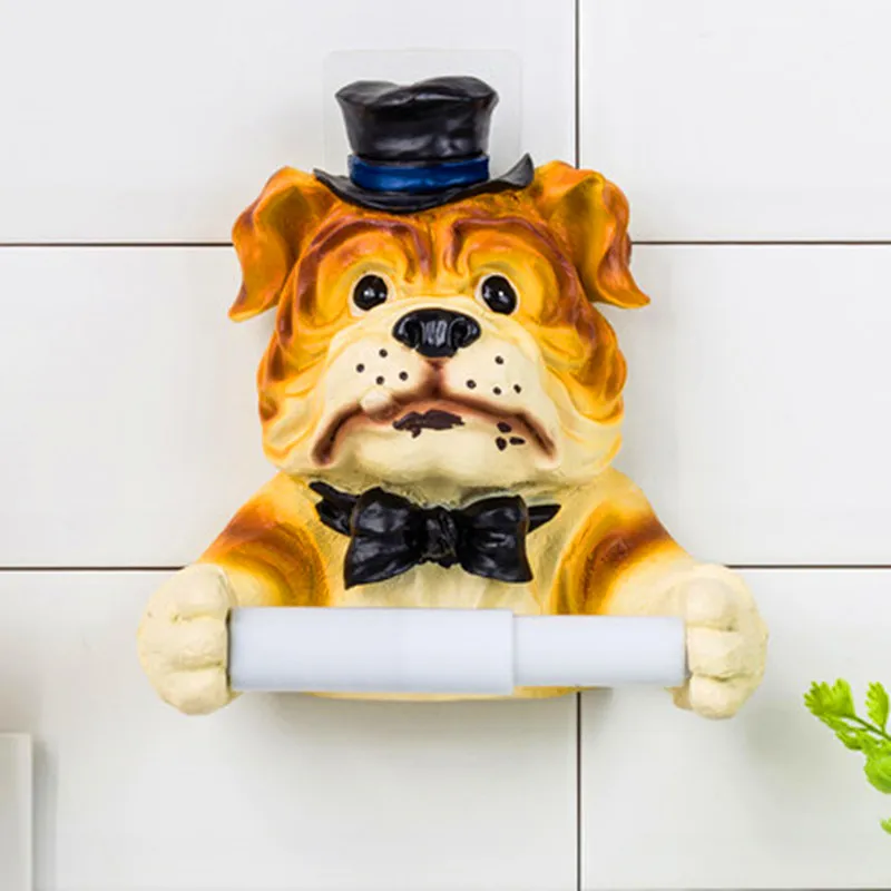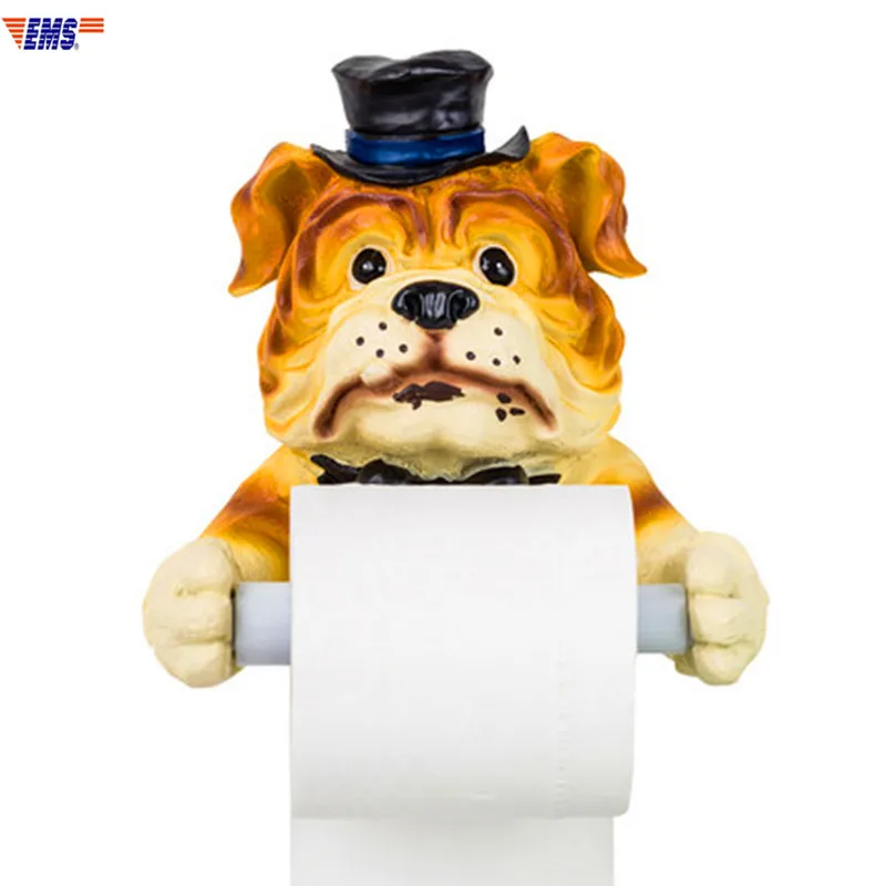 HOT SALE European Style Simulation Animal Housekeeper Dog Resin Tissue Holder Toilet Wall Art Decorations Ro